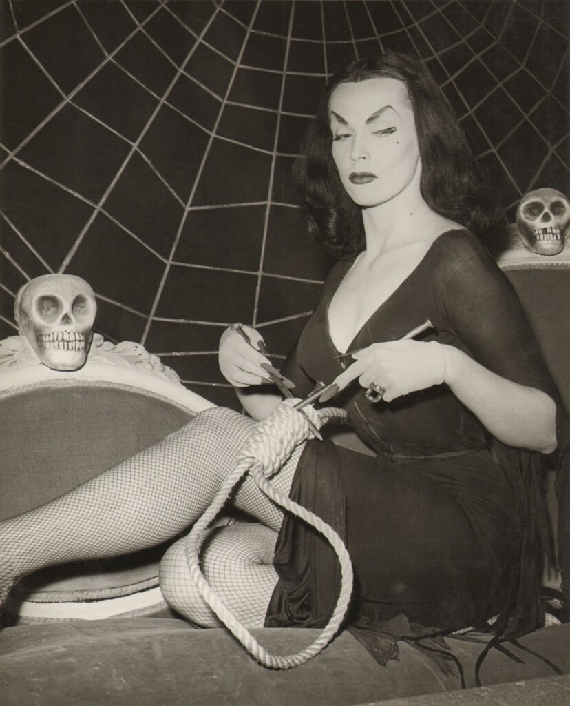 Nightmare Attic, soon to be renamed The Vampira Show, debuted on May 1, 1954. Vampira opened the shows by slinking down a cobwebbed hallway toward the camera, finally erupting in a blood-curdling scream. She delivered black-humored commentary (“I went to a delightful funeral yesterday. We buried a friend of mine — alive”) while sipping on cocktails like the “Mortician’s Martini” (one part formaldehyde, one part rattlesnake venom, a dash of culture blood, garnished with an eyeball). She was an immediate sensation, and Maila found herself being inundated with requests for personal appearances, profiled in Life, Newsweek, and TV Guide, and an in-demand guest at film premieres. Stardom was hers for the taking.